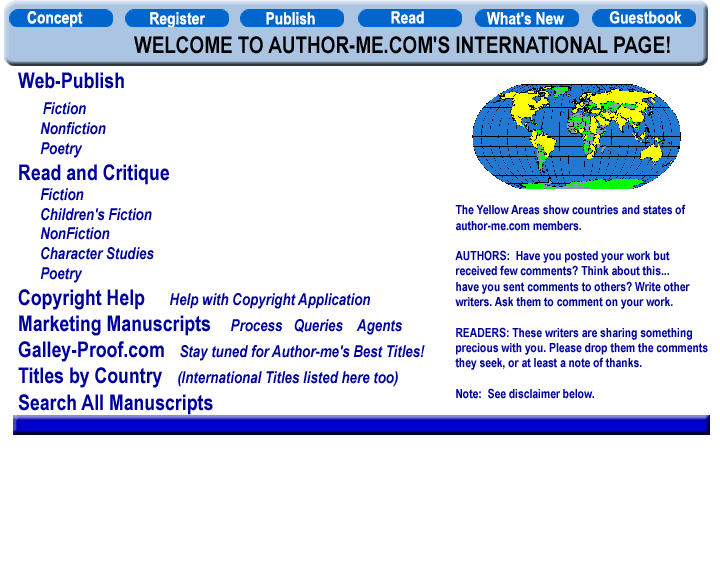 Watch for your listing! Most Author-me.com titles are on www.google.com, yahoo.com, msn.com, altavista.com, and many others!